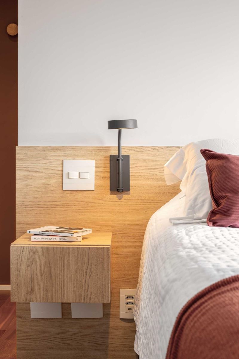 Giường ngủ được lắp thêm đèn đọc sách, kệ để đồ và cổ cắm