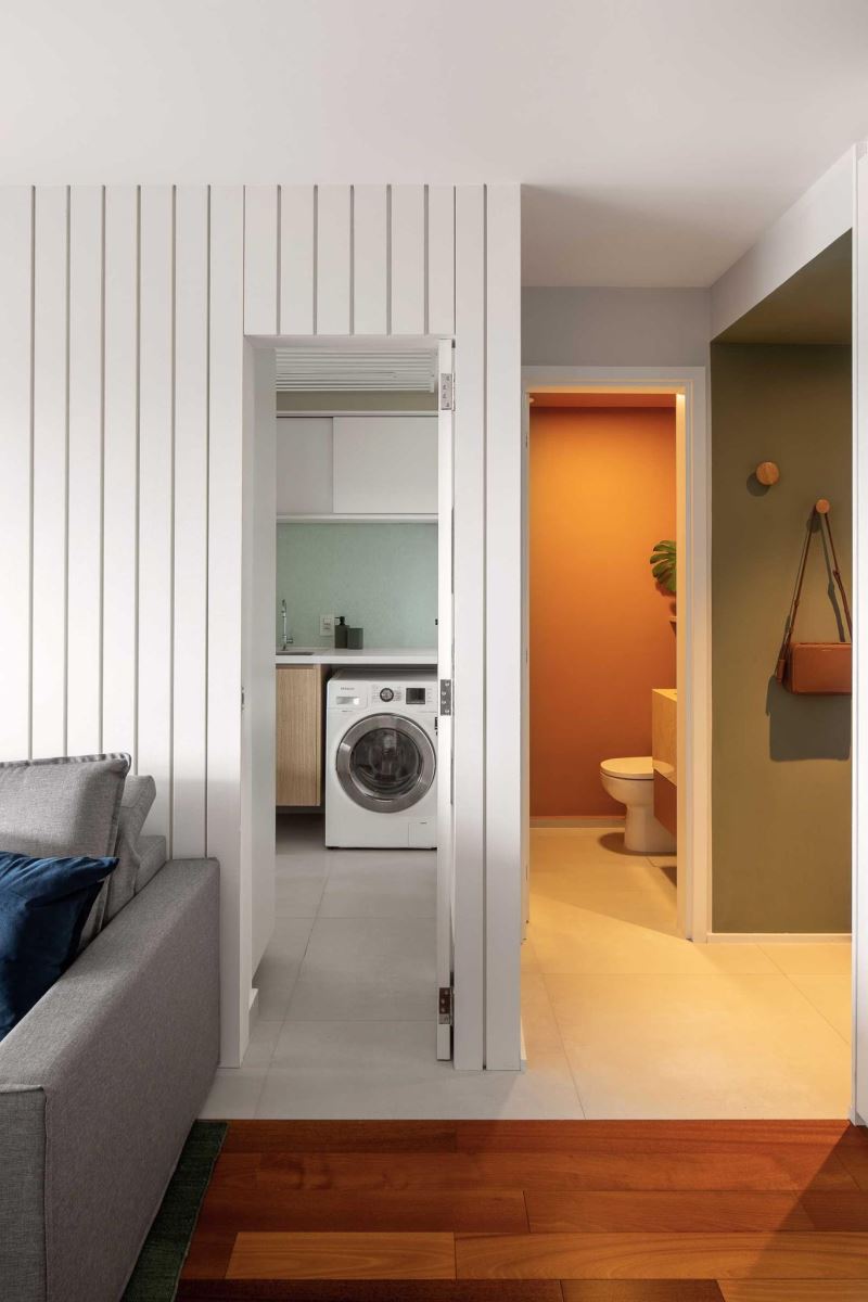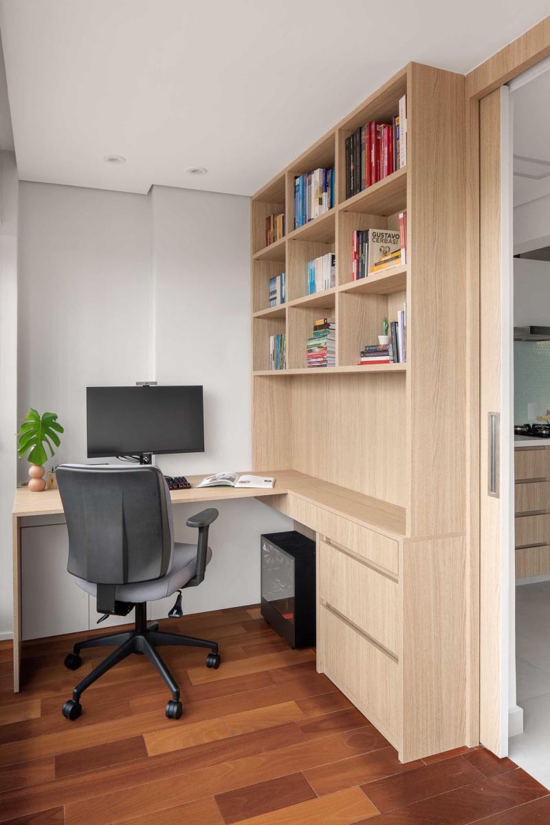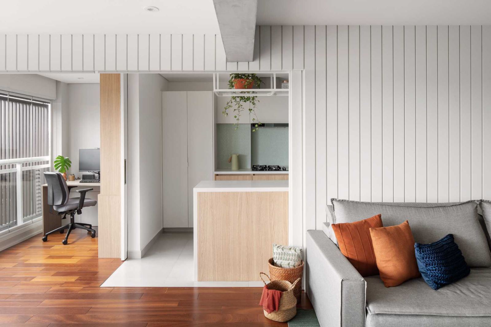 Căn hộ nhỏ xinh với thiết kế giấu phòng làm việc, nhà bếp sau bức vách.