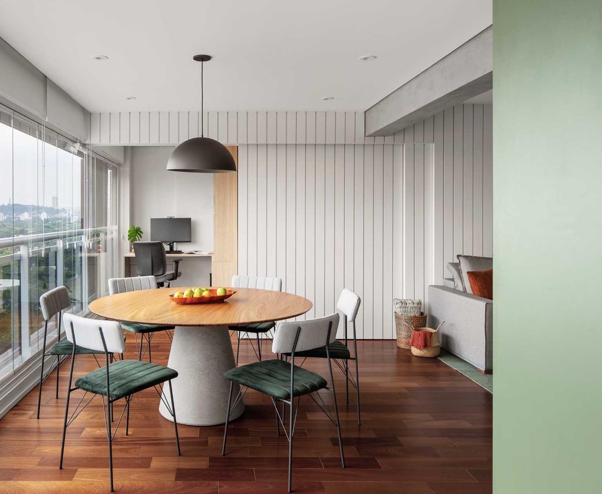 Bàn ăn được đặt gần view cửa kính và nhà bếp, phòng khách