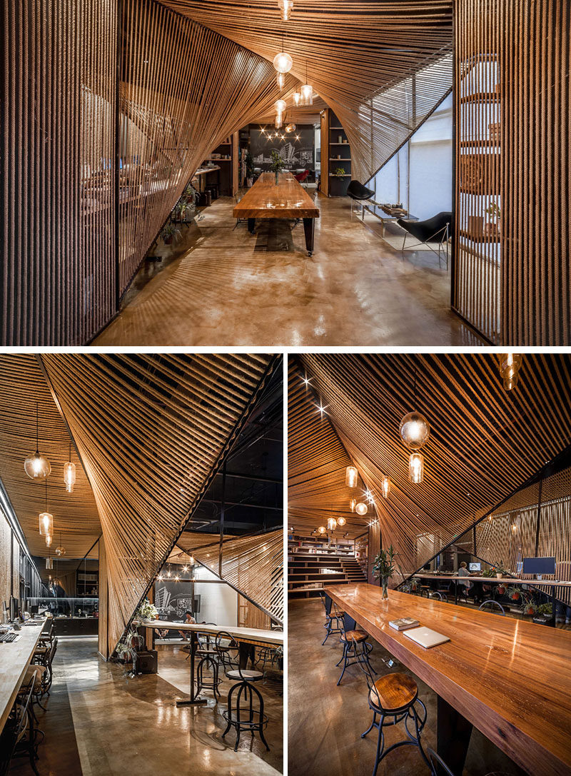 Văn phòng được sử dụng bởi một nhóm thiết kế quy mô nhỏ và các công ty khởi nghiệp, và là nơi họ có thể làm việc cùng nhau và chia sẻ tài nguyên. Để tạo ra các không gian riêng biệt trong không gian, nhưng không sử dụng tường, các nhà thiết kế đã tạo ra các vách ngăn bằng dây thừng.