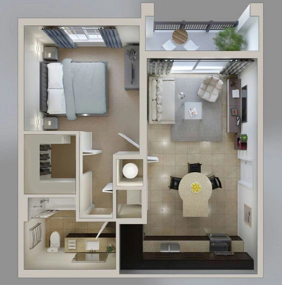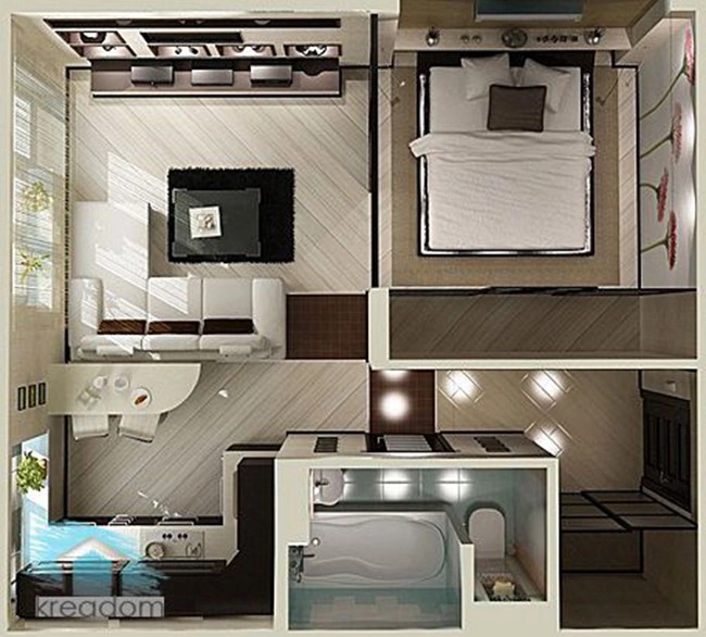 12. Đây có thể xem là căn hộ một phòng ngủ kiểu mẫu khi diện tích không lớn mà vẫn đầy đủ tiện nghi đến đáng mơ ước. Có thể dễ dàng nhận thấy nội thất trong nhà rất nhỏ, gọn, phù hợp với diện tích.