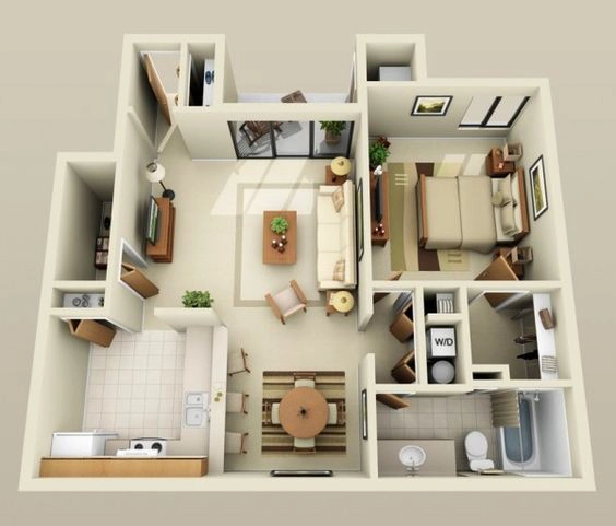 3. Khác với những mẫu căn hộ trên, căn hộ 1 phòng ngủ này khá rộng rãi. Có lẽ vì hiện tại nhu cầu của chủ nhân chỉ cần đến 1 phòng ngủ nên căn hộ dành hết diện tích cho các khu sinh hoạt công cộng. Nhờ vậy các không gian trong nhà đều riêng tư.